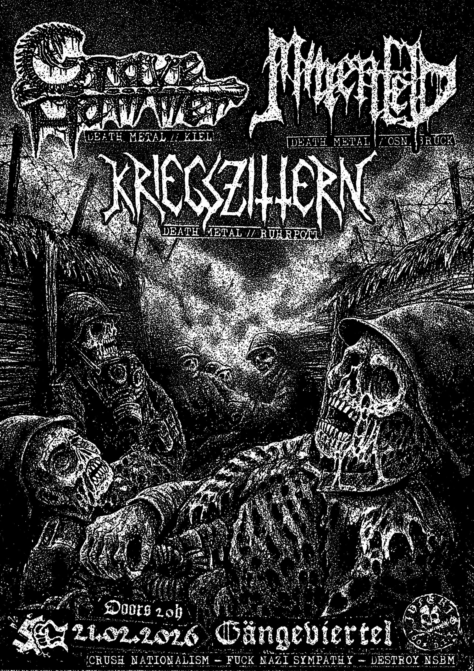 21.02.2026 // Gravehammer + Minenfeld + Kriegszittern Posted on 01/01/2025 - 11/12/2025 by inferis Gravehammer Death Metal // Kiel Gravehammer Bandcamp Minenfeld Death Metal // Osnabrück Minenfeld Bandcamp Kriegszittern Death Metal // Mülheim Kriegszittern Bandcamp